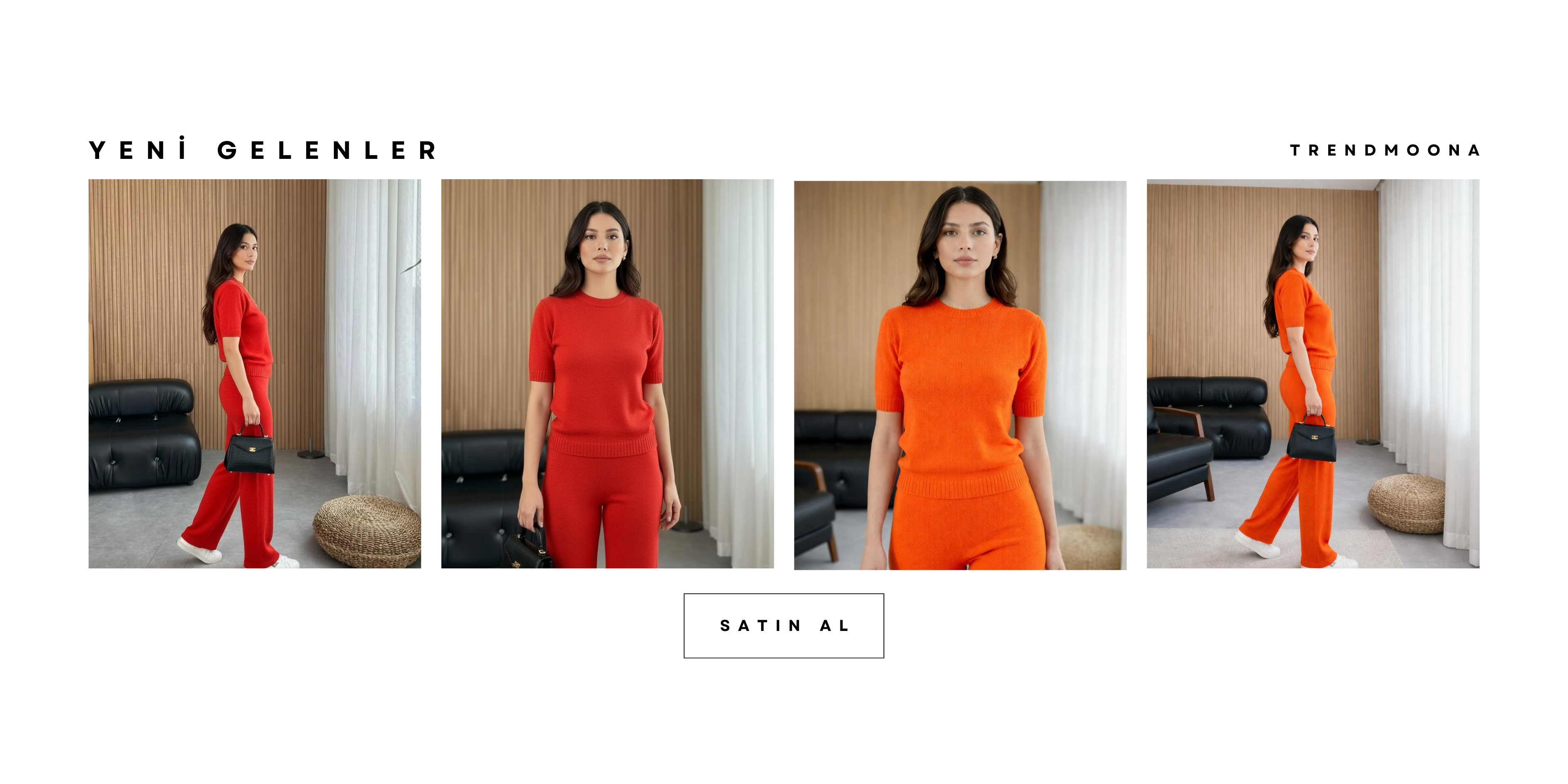 Trendmoona Turuncu Triko Takım Bluz Pantolon Set